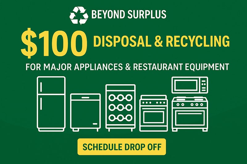 There’s really no such thing as “away” when you throw away an old stove, fridge, washer or dryer. Appliances that get “thrown away” eventually end up in a landfill somewhere, where they just sit around forever unless if you drop them off at a Beyond Surplus Location for Recycling.